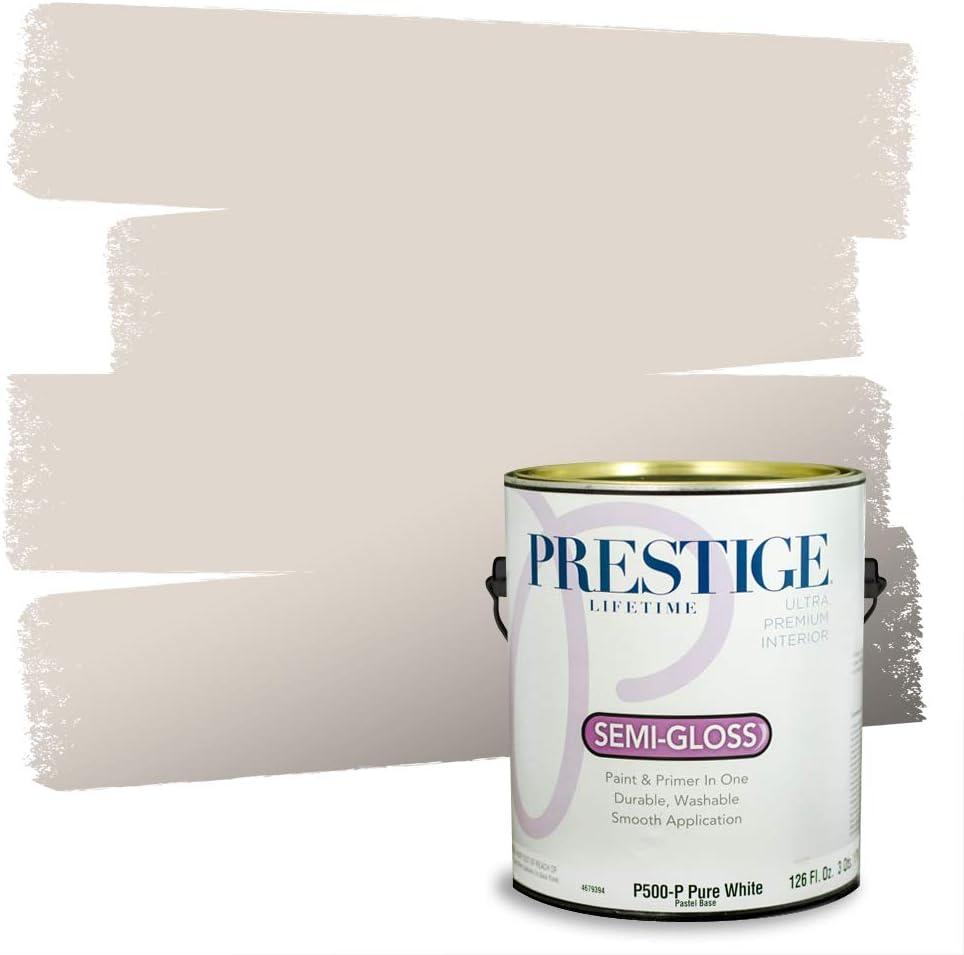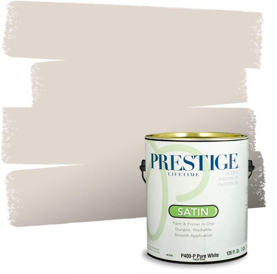 Prestige Paints Ultra Premium Acrylic Latex Interior Paint self-primes over properly prepared uncoated drywall, stucco, plaster or previously painted interior surfaces. Ideal for living rooms, family rooms, media rooms, bedrooms, dining rooms, and hallways. On stained or glossy surfaces use a stain blocking primer sealer. Certain colors may require more than one coat for complete hide. Actual paint colors may vary from on-screen and printer representation. Surface Preparation: All loose paint should be removed. The surface needs to be cleaned with detergent to remove dirt and grease and other contaminants. Rinse well to remove all soap residue and let dry. Scuff sand glossy surfaces and repair all imperfections. Remove dust with a damp cloth and allow to dry. New plaster must be properly cured. Patch cracks and holes, sand smooth when dry, then prime with this product. New woods may require and oil base primer/sealer. On metal use proper Rust Primer. Application: Stir or mix paint before using and intermix all containers for color uniformity. Apply this product as is with a high quality applicator such as a 3/8 inches nap roller cover, brush or pad painter. Thin sparingly with water if necessary for spraying. Dry Time: Dries in one hour. Recoat, if necessary, after four hours. Can clean gently with non-abrasive cleaner after 14 days. Cleanup: Use warm water and soap. Satin finish paints are probably the most commonly used finish on both interior surfaces. As with eggshell, this finish is good for high-traffic areas like kids' rooms, hallways and family rooms. Satin finishes resist mildew effectively and are easier to clean than flat or eggshell finishes, and can be wiped down or scrubbed lightly.
