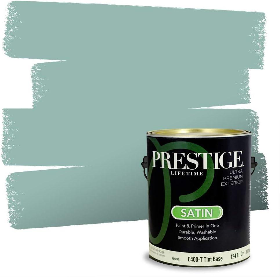 Prestige Paints 100% acrylic exterior latex paint and primer in one is a high end paint intended to be used on exterior surfaces including properly prepared wood, masonry surfaces, cement board siding, vinyl*, aluminum, and factory primed siding. (Note: when painting vinyl siding do not paint with any color darker than the original siding. Painting with darker colors may cause the siding to warp.) surface Preparation: remove dirt, mildew, grease, wax and soap residue, loose and peeling paint. Glossy areas must be dulled by sanding. PRIME all bare, new wood and factory primed wood with an oil base primer. PRIME masonry surfaces including cementitious siding with a latex primer. Application: Stir or mix paint before using and intermix all containers for color uniformity. Apply as is with a high quality brush, roller or pad painter. Thin sparingly with water if necessary for spraying. Do not overspread. Temperature must be above 50 F (10 c). average coverage 400 sq. Ft. (37 square meters) per gallon (3.78 L). for best performance, apply two coats of paint on new surfaces after priming. Do not use indoors. Dry time: Dries in 1 to 2 hours. Allow to dry overnight before coating. Low temperature or high humidity may increase dry time. Cleanup: use warm water and soap. Satin finish paints are probably the most commonly used finish on exterior surfaces. Satin finishes resist mildew effectively and are easier to clean than flat or eggshell finishes, and can be wiped down or scrubbed lightly. On exterior surfaces, satins are ideal for painting siding that is in good to excellent condition. Outside surfaces painted with satin paint also shed water effectively and don't fade quickly from the sun. They are also a good choice for painting trim and shutters. *Prestige paints uses proprietary base paints and tints to create and match colors. Prestige Paints works with industry leaders in paint color to match the color on this page based on the color specifications of the original to create a comparable color. Prestige Paints is not offering the ACTUAL branded color or paint product for sale and is not associated or affiliated with the color-referenced brand. Prestige Paints reference to any trademark is for color comparison only. Actual paint colors may vary from on-screen and printer representation. Note that color can vary due to sheen, light, surface, and application method.