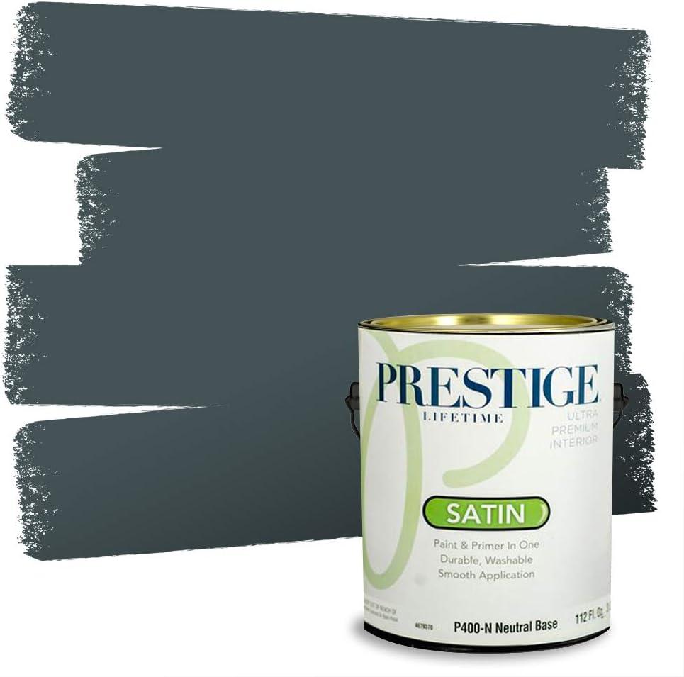 PRESTIGE Paints P400-T-1648BM Interior Paint and Primer In One Satin Comparable Match of Benjamin Moore, 1 gallon, Slate Blue(1653BM-PCM)